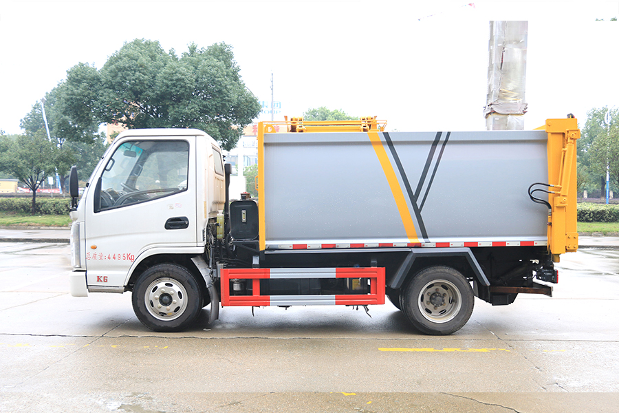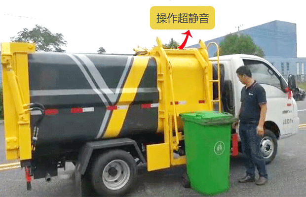 其自裝式的掛桶裝置可直接將路邊的垃圾桶掛在上面用提升機直接到在垃圾箱體里面省去了裝垃圾的麻煩。