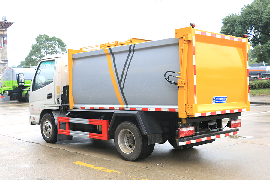 機械化自動裝卸垃圾,實現(xiàn)垃圾密封化運輸,有效地防止垃圾對人和環(huán)境的污染,提高汽車的運載效率,是一種安全、節(jié)能、環(huán)保、高效的新型環(huán)衛(wèi)專用車。
