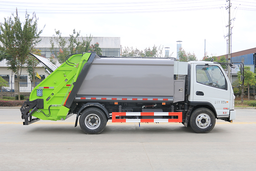 壓縮式垃圾車由密封式垃圾廂、液壓系統(tǒng)、操作系統(tǒng)組成。整車為全密封型,自行壓縮、自行傾倒、壓縮過程中的污水全部進入污水廂,較為徹底的解決了垃圾運輸過程中的二次污染的問題,避免了給人們帶來不便,關(guān)鍵部件采用進口部件,具有壓力大、密封性好、操作方便、安全等優(yōu)點。 可選配后掛桶翻轉(zhuǎn)機構(gòu)或垃圾斗翻轉(zhuǎn)機構(gòu)。壓縮式垃圾車構(gòu)成密封式垃圾廂、液壓系統(tǒng)優(yōu)點壓力大、密封性好、操作方便。